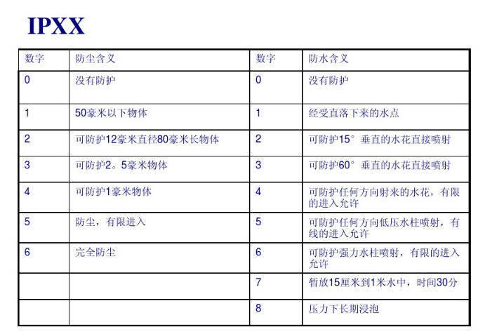 保護(hù)等級(jí)以ip后跟隨兩個(gè)數(shù)字來表示,數(shù)字用來明確保護(hù)等級(jí)。